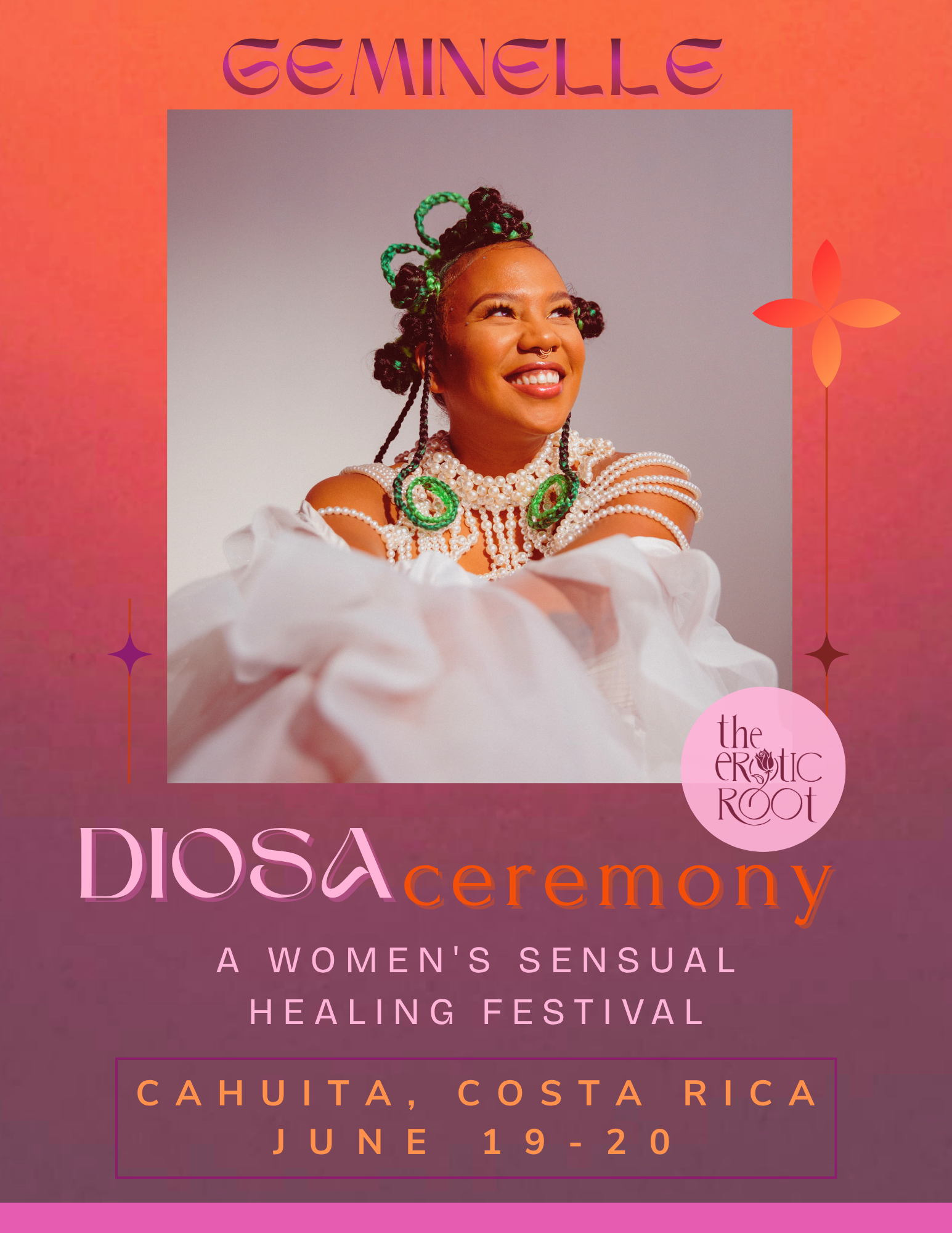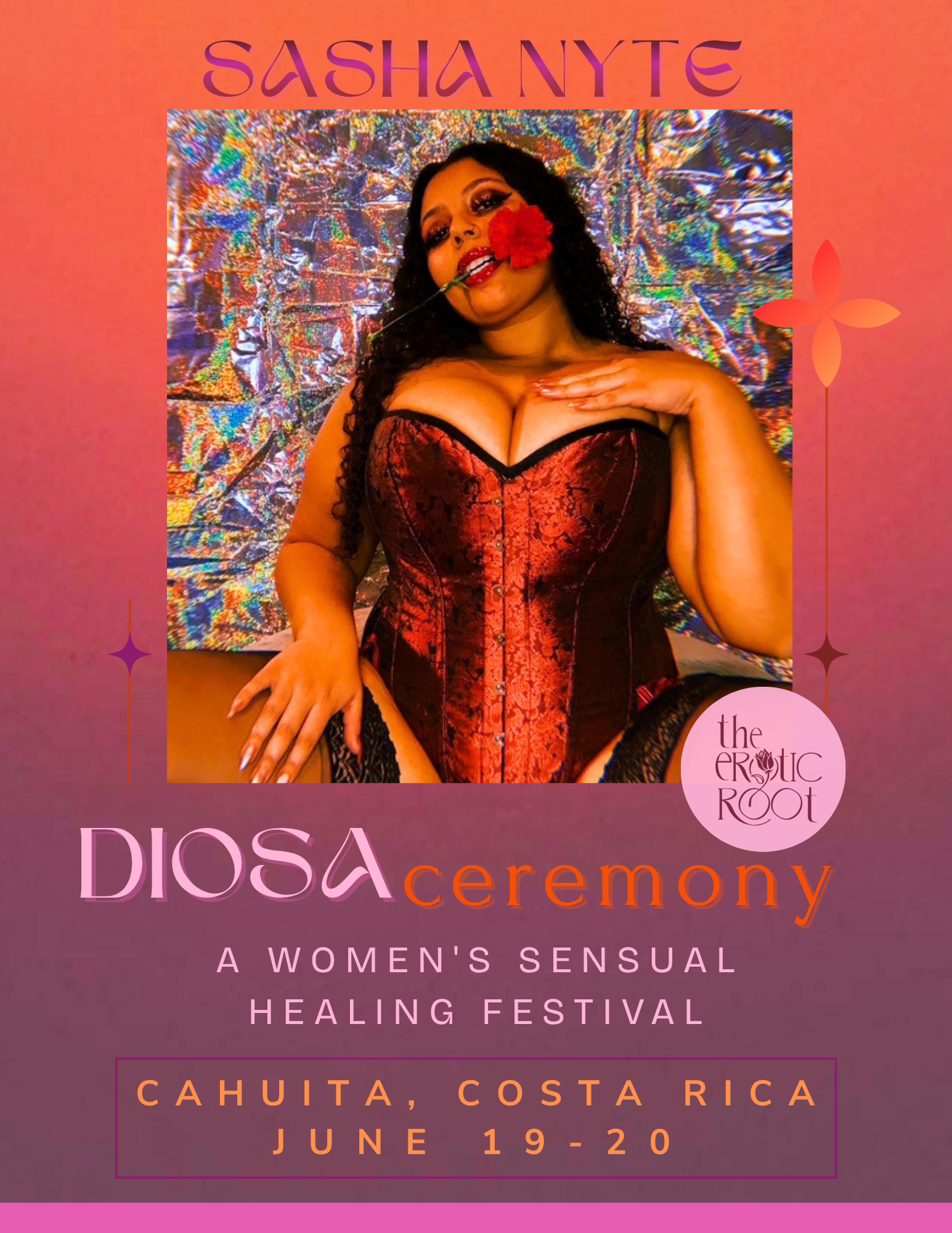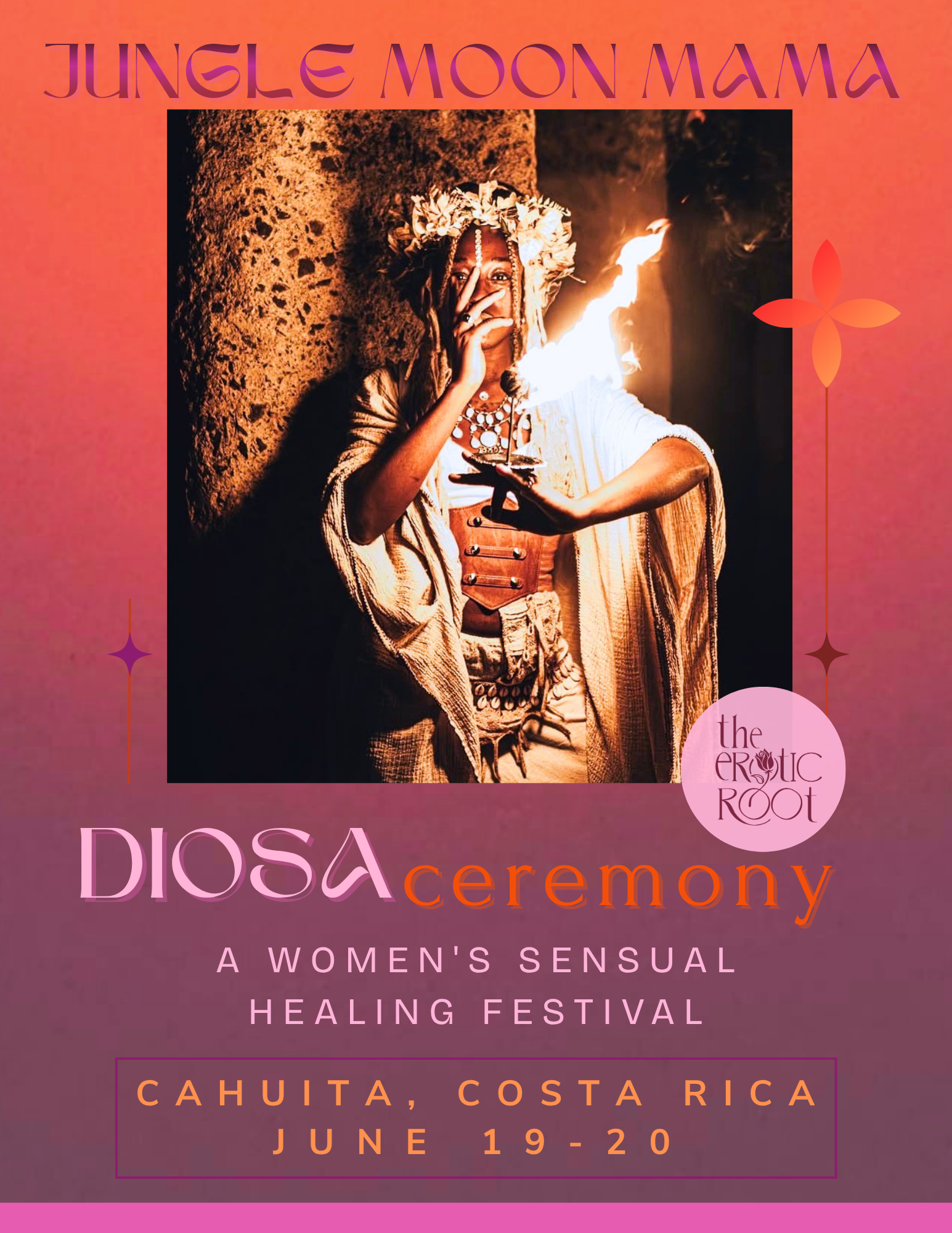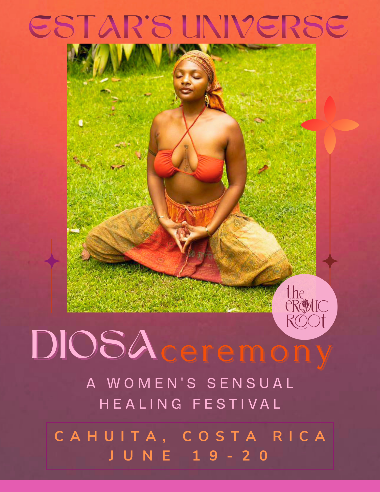 Held on the Caribbean coast of Costa Rica, DIOSA unfolds as a living ceremony — where mornings begin in grounding and devotion, afternoons open into movement and creative expression, and evenings bloom into performance, song, and sensual celebration.